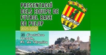 [val] Presentació dels equips de Futbol Base del Club Esportiu Polop 2025 - 2026 dissabte 25 d'octubre 11 h Plaza de l'Ermita Des de la Regidoria d'Esports els convidem que assistisquen i agrairem el seu suport a la nostra Leer más