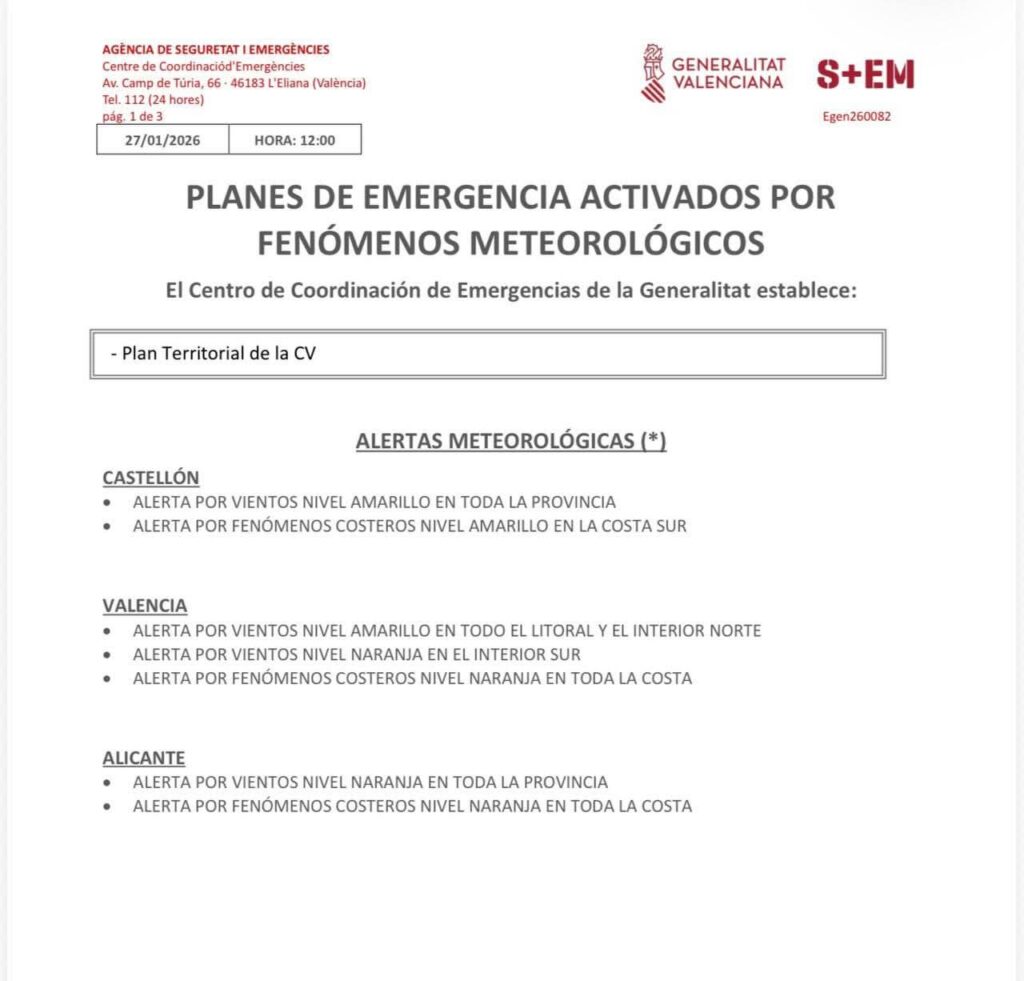 [cas] 🟠El CCE establece la ALERTA nivel NARANJA por VIENTOS en Polop.