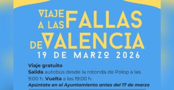 [val] VISITA LES FALLES DE VALÈNCIA! VIATGE GRATUÏT La Regidora de Participació ciutadana, Julia Bautista, et convida a visitar Les Falles de València el 19 de març. L’eixida està programada a les 9.00h des de la Rotonda de Polop. Places LIMITADES fins a omplir l’autobús. Per a les inscripcions apuntat al registre del Ajuntament. L’ÚLTIMLeer más