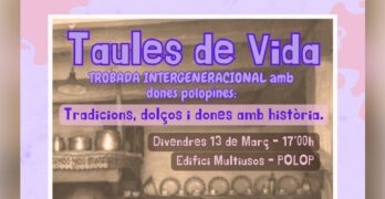 VAL. 𝐓𝐀𝐔𝐋𝐄𝐒 𝐃𝐄 𝐕𝐈𝐃𝐀, 𝐓𝐑𝐎𝐁𝐀𝐃𝐀 𝐈𝐍𝐓𝐄𝐑𝐆𝐄𝐍𝐄𝐑𝐀𝐂𝐈𝐎𝐍𝐀𝐋 𝐀𝐌𝐁 𝐃𝐎𝐍𝐄𝐒 𝐏𝐎𝐋𝐎𝐏𝐈𝐍𝐄𝐒: L’associació Imagina Polop, amb el suport de les Regidories de Joventut, Cultura i Benestar Social de l’Ajuntament de Polop de la Marina, posa en marxa una trobada molt especial. Els i les joves del poble seran els encarregats d’escoltar, recopilar les receptes tradicionals de dolços iLeer más