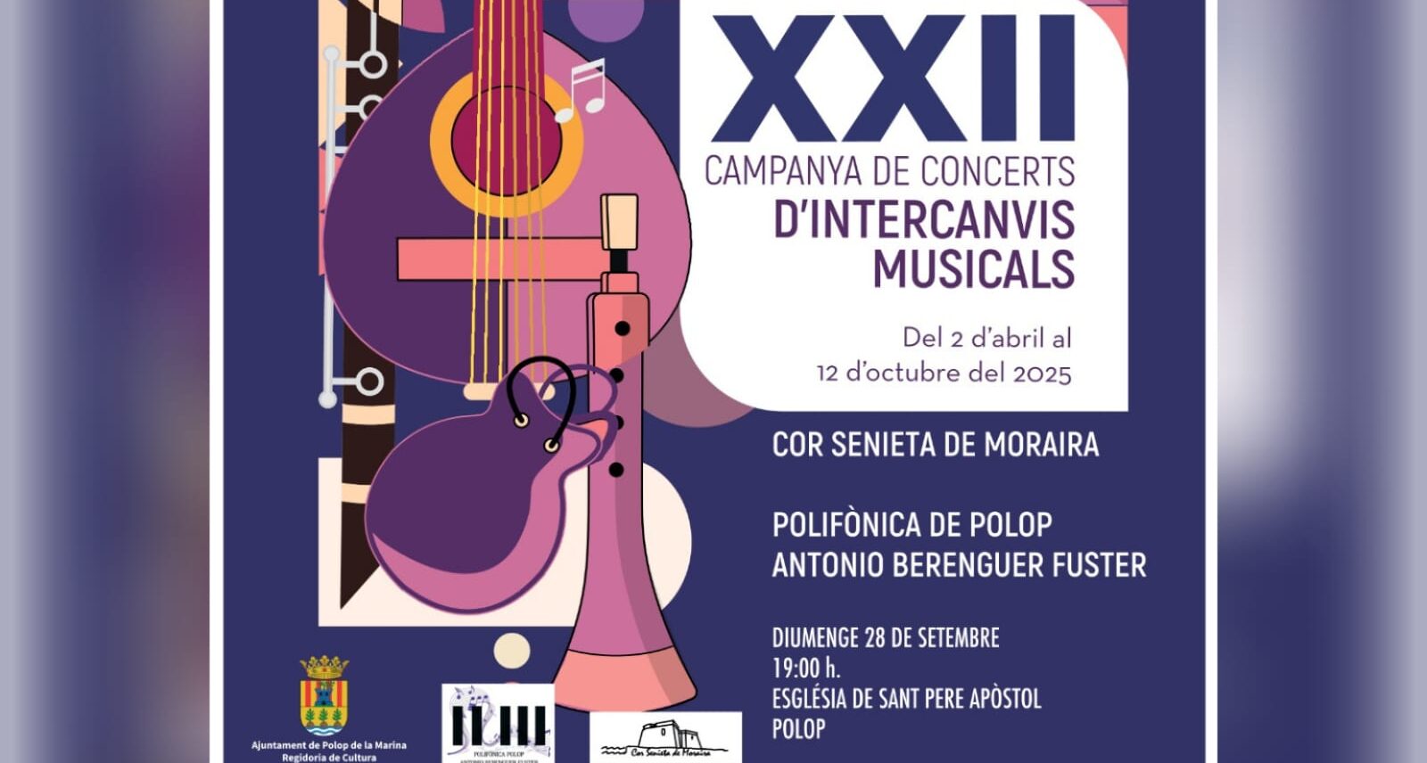 El COR SENIETA DE MORAIRA i la POLIFÒNICA DE POLOP ANTONIO BERENGUER FUSTER ens delectaran amb un magnífic concert.
