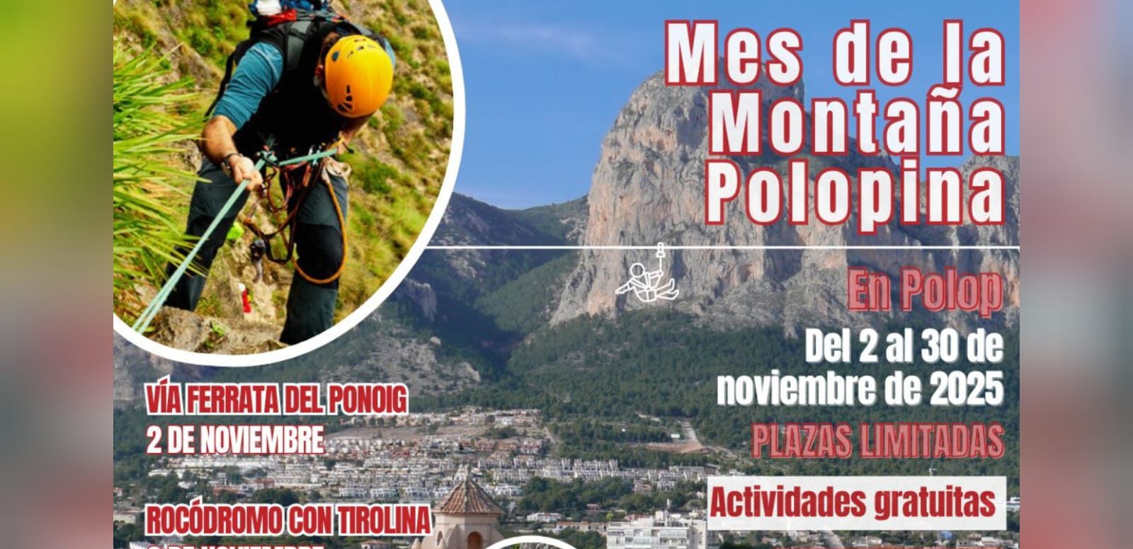 Desde las Concejalías de TURISMO Y DEPORTES, encabezadas por Angela Fuster, celebramos el MES DE LA  MONTAÑA POLOPINA este noviembre. Todas completamente GRATUITAS, pero con inscripción porqué son plazas limitadas.