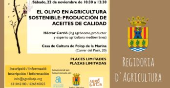 𝘼𝙂𝙍𝙄𝘾𝙐𝙇𝙏𝙐𝙍𝘼 𝙇𝙊𝘾𝘼𝙇 𝙋𝙊𝙇𝙊𝙋 𝘿𝙀 𝙇𝘼 𝙈𝘼𝙍𝙄𝙉𝘼 2025 PLAZAS LIMITADAS Y FORMACIÓN GRATUITA. Cursos subvencionados por La Diputación de Alicante, Concejalía de Agricultura y Agrollotja. EL OLIVO EN AGRICULTURA SOSTENIBLE: PRODUCCIÓN DE ACEITES DE CALIDAD. Sábado 22 de noviembre 10:30 a 12:30 h Casa de Cultura en la calle del Pòsit 20, Polop. 𝐈𝐧𝐬𝐜𝐫𝐢𝐩𝐜𝐢𝐨𝐧e𝐬 𝐢 𝐢𝐧𝐟𝐨𝐫𝐦𝐚𝐜𝐢ón:Leer más