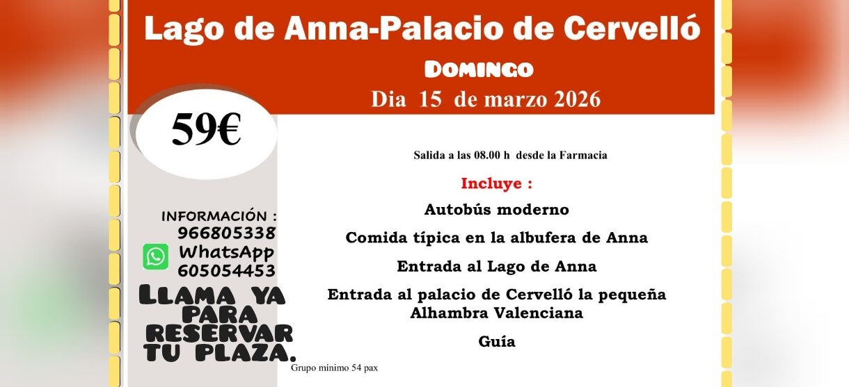 [cas] VUELVEN LOS VIAJES CULTURALES este 2026 💪💛🚌📆 EL DOMINGO 15 DE MARZO en el Lago de Anna y el Palacio de Cervelló, la pequeña Alhambra Valenciana.