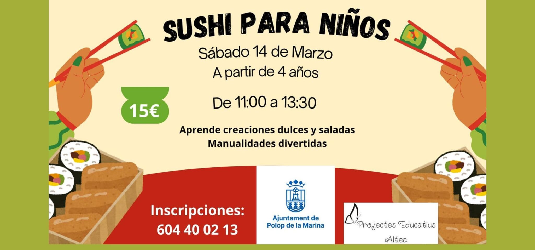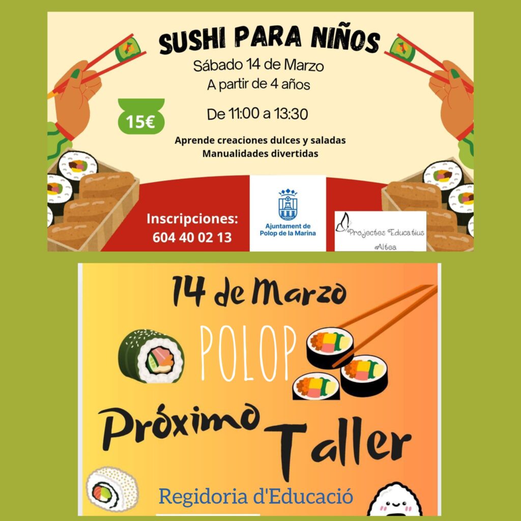 SUSHI PARA NIÑOS aterriza en Polop para que los más peques se conviertan en auténticos mini chefs por un día.