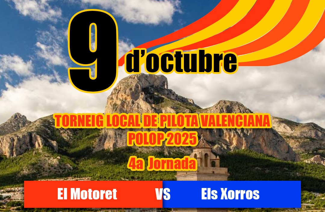 Aquest dijous 9 d´octubre tindrà lloc la 4a Jornada del Torneig Local de Pilota Valenciana Polop 2024.